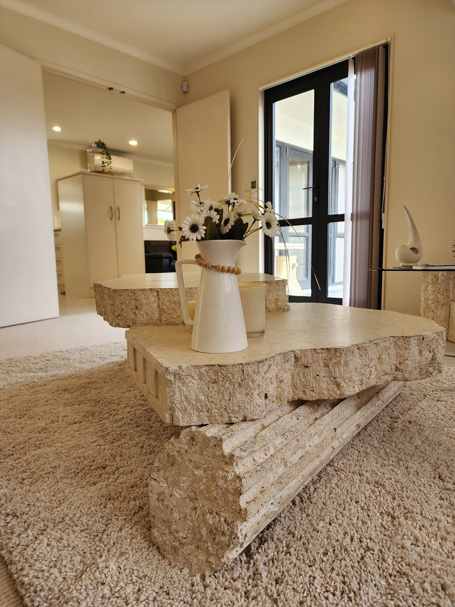 Elevate your living space with the CEBU STACK TABLE. Crafted with layers of Philippine fossil stone, this unique table adds a touch of history and natural beauty to any room. Bring a piece of the Philippines into your home and create a statement that's both elegant and timeless with this one-off vintage piece.